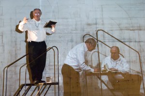 Burun, bir sabah uyandığında burnunun yerinde olmadığını farkeden Kovalyov’un, aynı sabah kahvaltısının içinde bir burun olduğunu ve bu burnun düzenli müşterisi Kovalyov’a ait olduğunu farkeden berber Yakovlevich’in ve surattan ayrıldıktan sonra ayrı bir “birey” olarak hayatına devam eden bir burnun satirik anlatısından oluşuyor. Burada Kenteridge hikayenin iki önemli noktasını işaret ediyor: hiyerarşik bürokrasi ve kişilik/kendilik bölünmesi. Zira Kentridge bir öğretmen gibi kağıtlarını karıştırarak bize hikaye ve anılarını anlatırken bir yandan da arkasındaki perdede beliren şizofrenik ikizleriyle veya kişilik bölünmesinin ‘öteki’ tezahürleriyle paslaşıyor. ‘Her şeyin hem mümkün hem de imkansız’ göründüğü gece yarılarında uyanıp Burun öyküsünden yola çıkıp Gogol’dan Schostakowitsch’e, Sterne’den Cervantes’e kadar tartışmayı genişletirken farklı anlamlarla ve sembollerle karşılaşılaşıyor, uykusuz dakikalar boyunca bu anlamlarla boğuşuyor. Stalin ve rus avangardının hazin sonundan, hem yazar hem okuyucu olan Gogol ve Cervantes’e, ‘burnun’ türlü sembolik niteliklerinden edebiyat tarihde burnun yerine kadar tüm fikirler havada uçuşurken, Kentridge’in yaratıcı sürecinin –anlamın anlamsızlığı ve ona ulaşma istencinin- sancılı dakikalarına tanık oluyoruz. Bir ara rahatlayan Kentridge sanatçı kimliğini bu sefer bir kurtuluş olarak kullanarak “ben sanatçıyım, işin anlam değil haz/keyif üretmek” diyor ve tüm yükü kendi ‘öteki’sine yıkıyor.